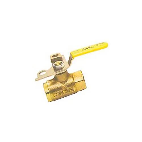 Meets OSHA standards and provides for easy, safe maintenance of pneumatic tools ~ Can be padlocked OPEN or CLOSED with same hardware ~ Built with RPTFE seats and stuffing box ring, a blowout-proof stem design, adjustable packing gland and chromium-plated ball ~ Threaded end connections ~ Temperature range: +50F to 200F Blow-out- proof stem design ~ Adjustable packing gland ~ Pressure Ratings: 600 psig WOG, Cold Non-Shock, 150 psig Saturated SteamConbraco 75-105-01 Ball Valve Bronze Padlock Threaded Fip X Fip
