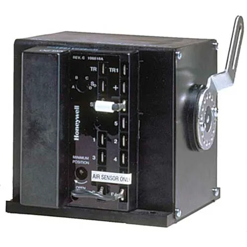The Honeywell M7415A1006 is a 25 lb-in. spring return damper actuator which provides two-position, three-position, floating, or modulating control of economizer systems, ventilation dampers and combustion air dampers used in residential or commercial HVAC equipment. Features: The Honeywell M7415A1006 synchronous motor provides quiet efficiency. Spring returns motor shaft to normal position on power interruption. The high impact, glass-fiber reinforced plastic case is rugged, lightweight and corrosion resistant. Uses Q298B Linkage.