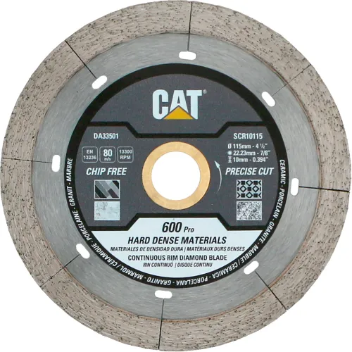 Caterpillar® 600 Pro Continuous Rim Diamond Blade, 4-1/2" Dia. x 3/16"T x 7/8" Center Hole Dia.