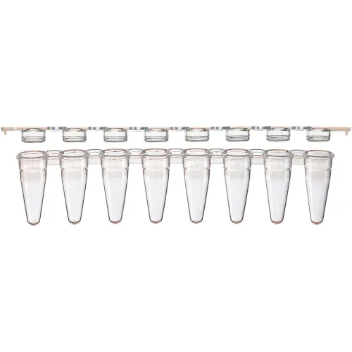 0.1mL 8-Strip Tubes, Low Profile, with Separate 8-Strip Clear Flat Caps, Natural, 125/Pack