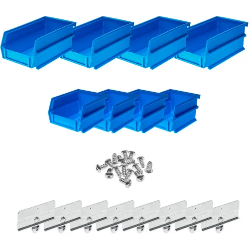 Triton Products Poly Blue Hanging Bin & BinClip Kits, 4 Small & 4 Medium Bins