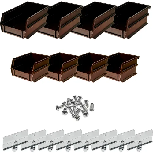 Triton Products Poly Brown Hanging Bin & BinClip Kits, 4 Small & 4 Medium Bins