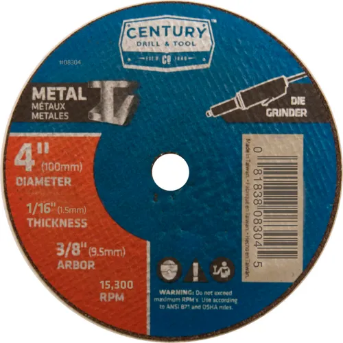 Century Drill 08304 Cutting Wheel 4" x 3/8" Aluminum Oxide