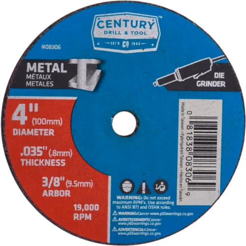 Century Drill 08306 Cutting Wheel 4" x 3/8" Aluminum Oxide