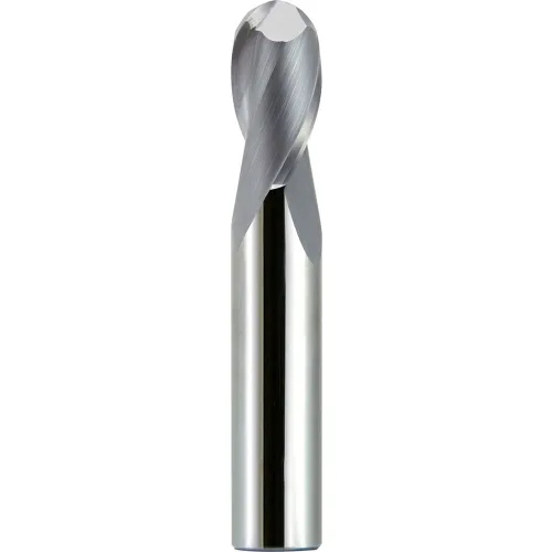 1/16" Dia., 1/8" Shank, 3/16" LOC, 1-1/2" OAL, 2 Flute Solid Carbide Ball Single End Mill, Uncoated