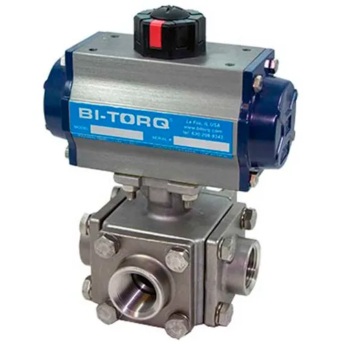 BI-TORQ 1" 3-Pc SS NPT Ball Valve W/Dbl. Acting Pneum. Actuator