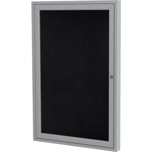 Ghent Enclosed Bulletin Board, 1 Door, 18"W x 24"H, Black Recycled Rubber/Silver Frame