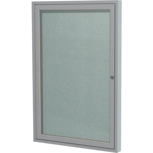 Ghent Enclosed Bulletin Board, Outdoor, 1 Door, 18"W x 24"H, Silver Vinyl/Silver Frame