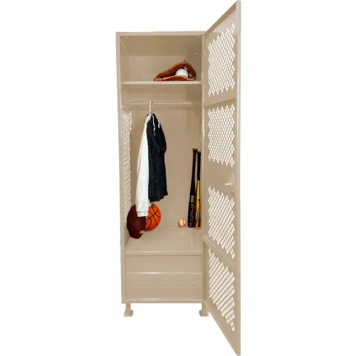 Global Industrial 1 Door Security Gear Locker with Foot Locker & Legs, 24"W x 18"D x 76"H, Putty