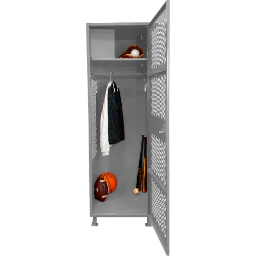Global Industrial 1 Door Security Gear Locker with Top Compartment & Legs, 24"W x 24"D x 76"H, Gray