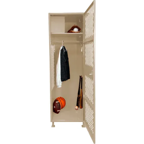 Global Industrial 1 Door Security Gear Locker with Top Compartment & Legs, 24"W x 24"D x 76"H, Putty