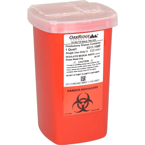 Oakridge Products 1 Quart Sharps Container w/ Flip Lid, Red