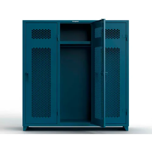 Strong Hold® 1-Tier 3 Door Extra HD Ventilated Locker, 72"W x 24"D x 75"H, Blue, Assembled