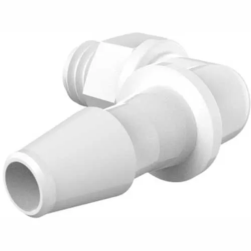 Eldon James 10-32 UNF to 1/8" Barbed Elbow, Natural Kynar