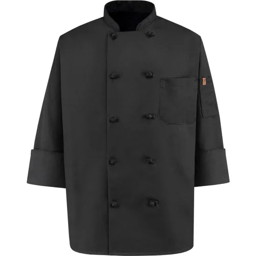 Chef Designs 10 Button-Front Chef Coat, Knot Buttons, Black, Spun Polyester, L