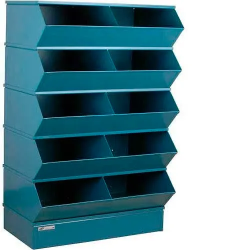 Stackbin® Steel Hopper Stack Bin, 10 Compartment Steel Sectional Unit, 37"W x 24"D x 55"H, Blue