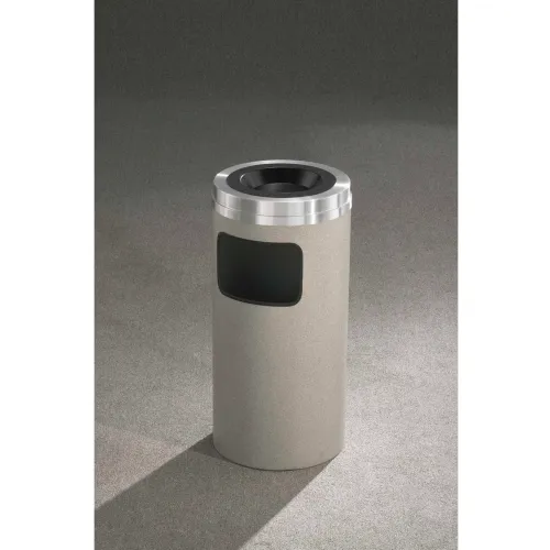 Glaro 10 Gallon Ash/Trash Receptacle w/Sand Cover, Satin Black/Satin Aluminum Lid - C1531-BK-SA