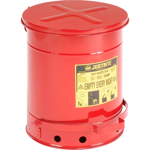 Justrite 10 Gallon Oily Waste Can, Red - 09300