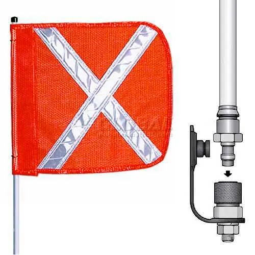 10' Heavy Duty Quick Disconnect Warning Whip w/o Light, 16"x16" Orange w/ X Rectangle Flag