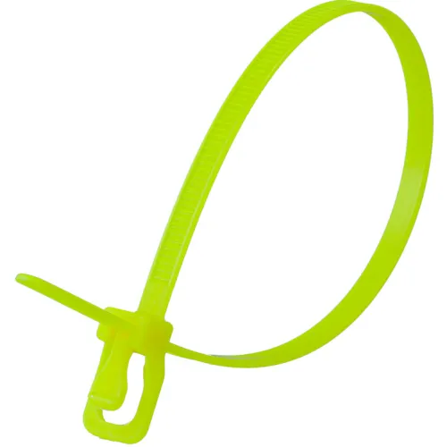 RETYZ 10" Releasable/Reusable Cable Ties, 50 lb. Tensile Strength, Fluorescent Yellow, 100/Pack