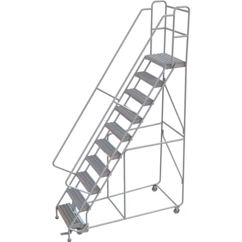 10 Step Aluminum Rolling Ladder, 24"W Grip Strut, 14"D Top Step, 32" Handrails - WLAR110245