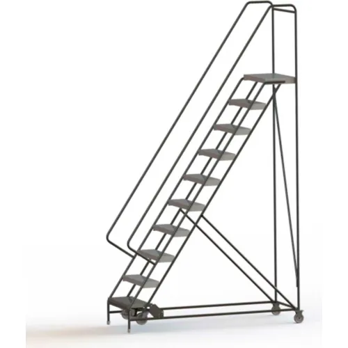 10 Step Aluminum Rolling Ladder, 24"W Ribbed Tread, 14"D Top Step, 42" Handrails - WLAR110244C