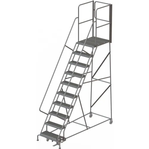 10 Step Steel Rolling Ladder W/Rear Exit Walk Off Gate, 24"W X 30"D Plat. Serrated - KDSR110242-XR