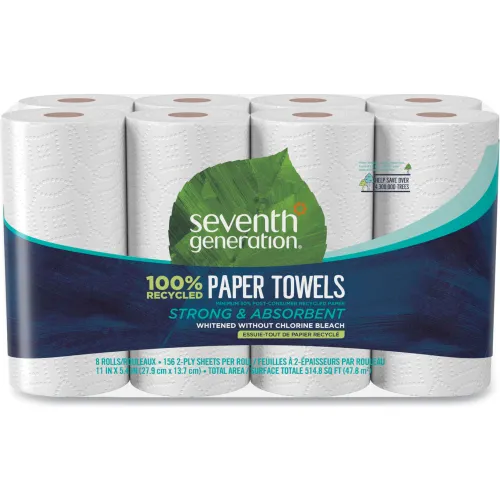 Seventh Generation® 100% Recycled Paper Towel Rolls, 2-Ply, 11" x 5.4", 156 Towels/RL, 8 RL/PK