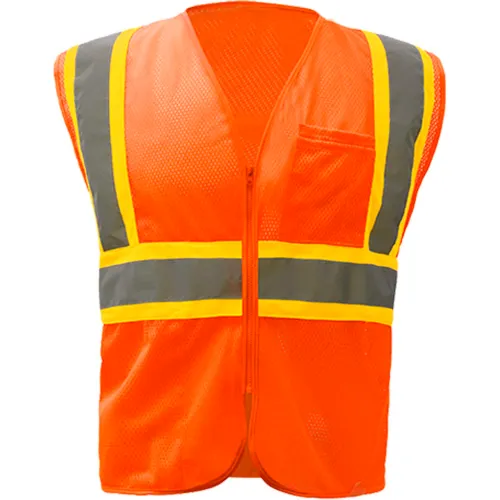 GSS Safety 1006 Standard Class 2 Two Tone Mesh Zipper Safety Vest, Orange, Medium