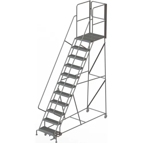 11 Step Steel Rolling Ladder W/Rear Exit Walk Off Gate, 24"W X 30"D Plat. Serrated - KDSR111242-XR