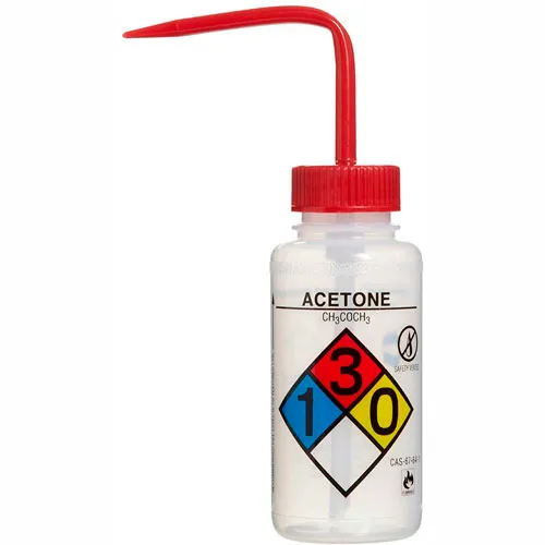 Bel-Art LDPE Wash Bottles 118080001, 250ml, Acetone Label, Red Cap, Wide Mouth, 4/PK