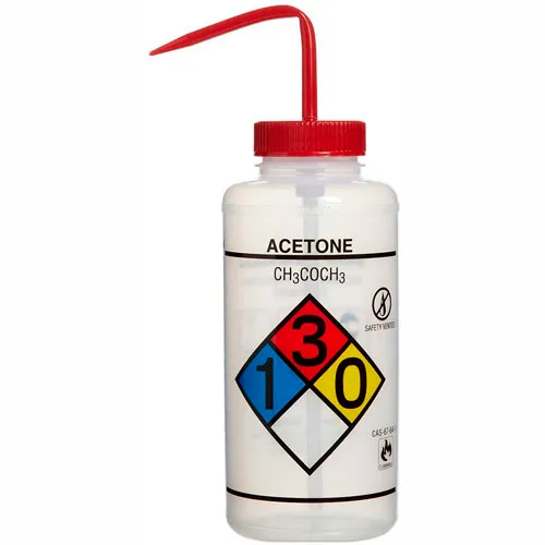 Bel-Art LDPE Wash Bottles 118320001, 1000ml, Acetone Label, Red Cap, Wide Mouth, 2/PK