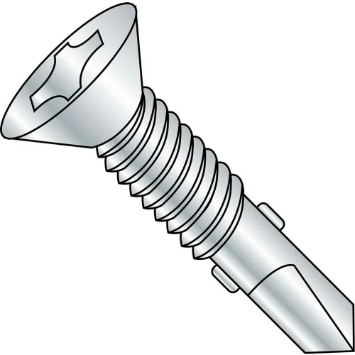 12-24X2 Phillips Flat Self Drill Screw #4 Point with Wings Full Thread Zinc Bake, Pkg of 1000