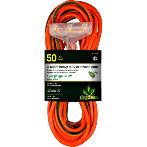 GoGreen Power, 12/3 50' 3-Outlet Heavy Duty Extension Cord, GG-15250, Lighted End