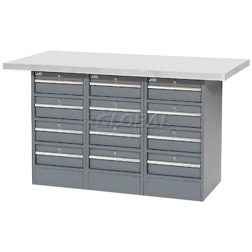 Global Industrial Workbench w/ Laminate Square Edge Top & 12 Drawers, 60"W x 30"D, Gray