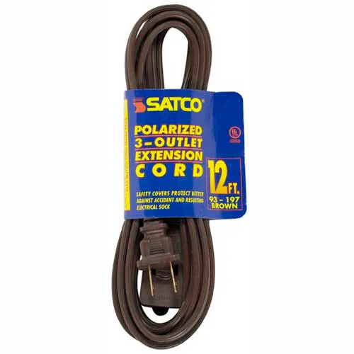 Satco 93-197 12 Ft. Extension Cord 16/2 SPT-2, Brown