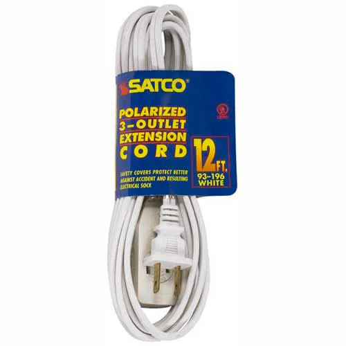 Satco 93-196 12 Ft. Extension Cord 16/2 SPT-2, White
