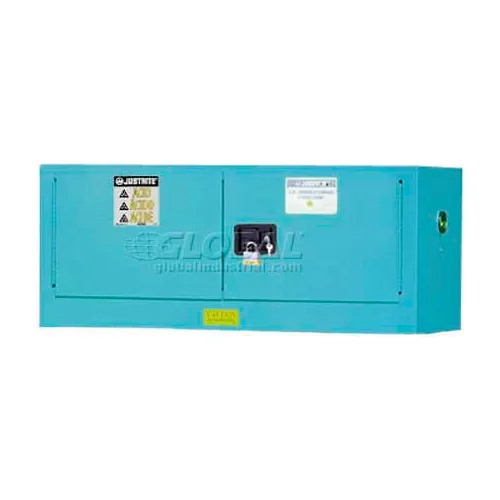 Justrite 12 Gal. Acid Corrosive Cabinet, Self-Close, 2 Door, Piggyback, 43"W x 18"D x 18"H, Blue