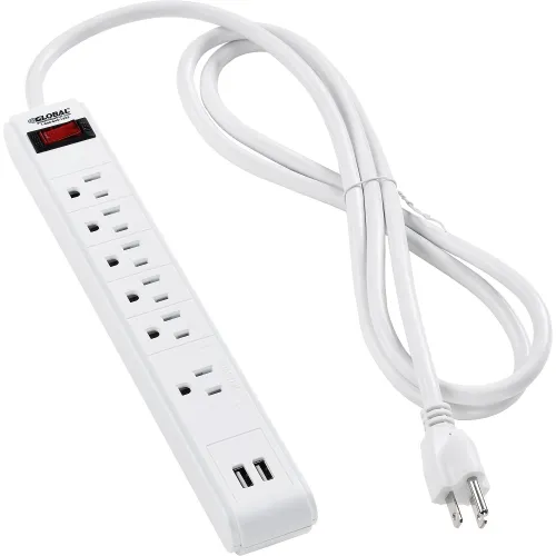Global Industrial Surge Protected Power Strip W/USB Ports, 5+1 Outlets, 15A,900 Joules,6' Cord