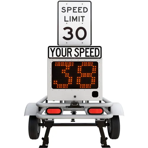 Fast 12" LED Radar Feedback Trailer Sign, Solar Powered, 53"W x 97"D x 74"H, Black/White