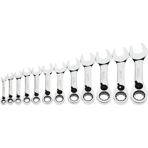 Williams® 12 Piece 12-Point Stubby Reversible Combination Ratcheting Wrench, Chrome