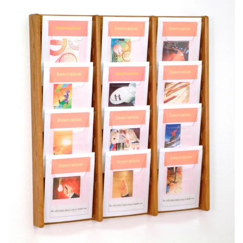 12 Pocket (3Wx4H) Acrylic & Oak Wall Display - Medium Oak