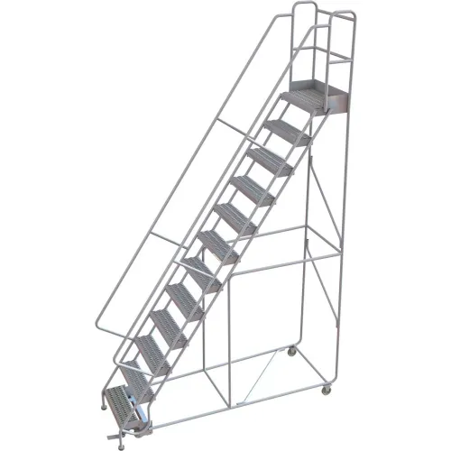 12 Step Aluminum Rolling Ladder, 24"W Grip Strut, 14"D Top Step, 36" Handrails - WLAR112245