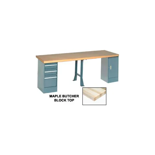Global Industrial 120"W x 30"D Production Workbench - Maple, Cabinet, 3 Drawer, 1 Leg, Gray