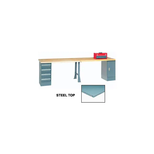 Global Industrial 120x30 Production Workbench Steel Square Edge, Cabinet, 4 Drawer, 1 Leg GY