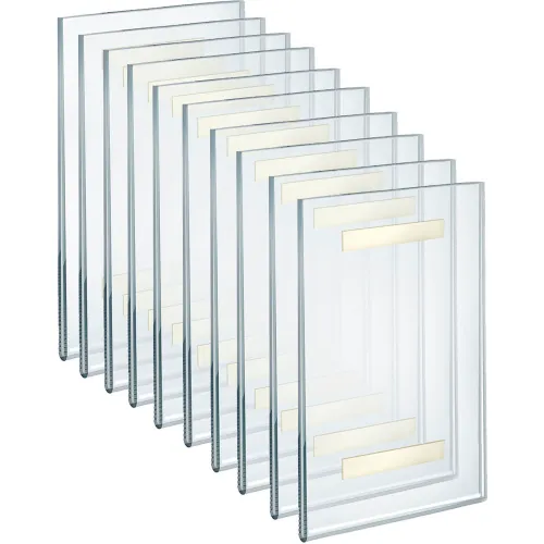 Global Approved 122019 Vert. Wall Mount Acrylic Sign Holder W/ Adhesive Tape, 7" x 11"