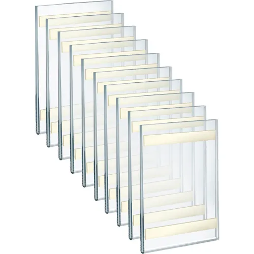 Global Approved 122027 Vertical Wall Mount Acrylic Sign Holder W/ Adhesive Tape 5" x 7"