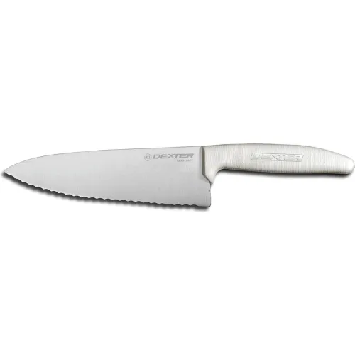 Dexter Russell 12613 - Scalloped Cook's Knife, High Carbon Steel, Stamped, White Handle, 6"L