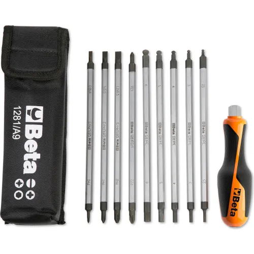 Beta 1281BG 9-Piece Reversible Screwdriver Bits & 1 Handle with Case