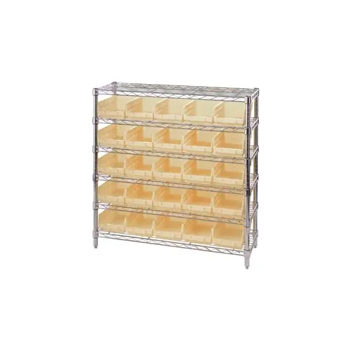 Global Industrial Chrome Wire Shelving with 25 4"H Plastic Shelf Bins Stone, 36x14x36